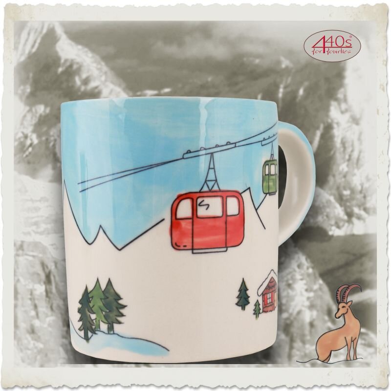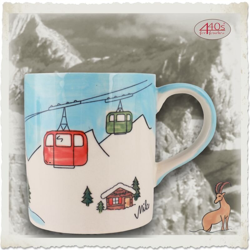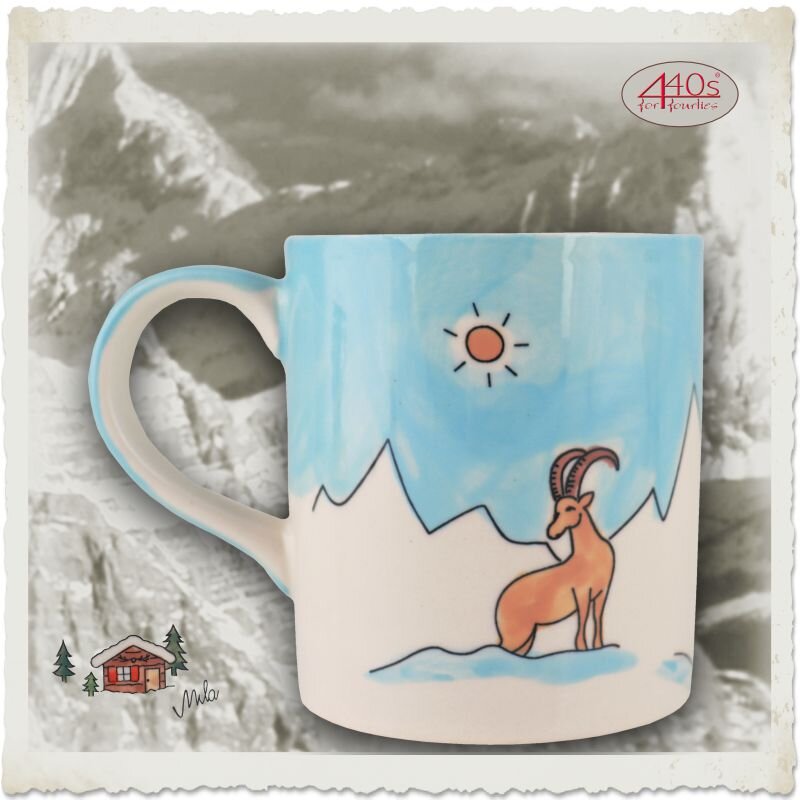 Dieses Angebot gilt für ein Stück Mila Keramik-Becher, Motiv: Gipfelstürmer, Artikel MI-80316, ohne Deko oder sonstigem Zubehör.