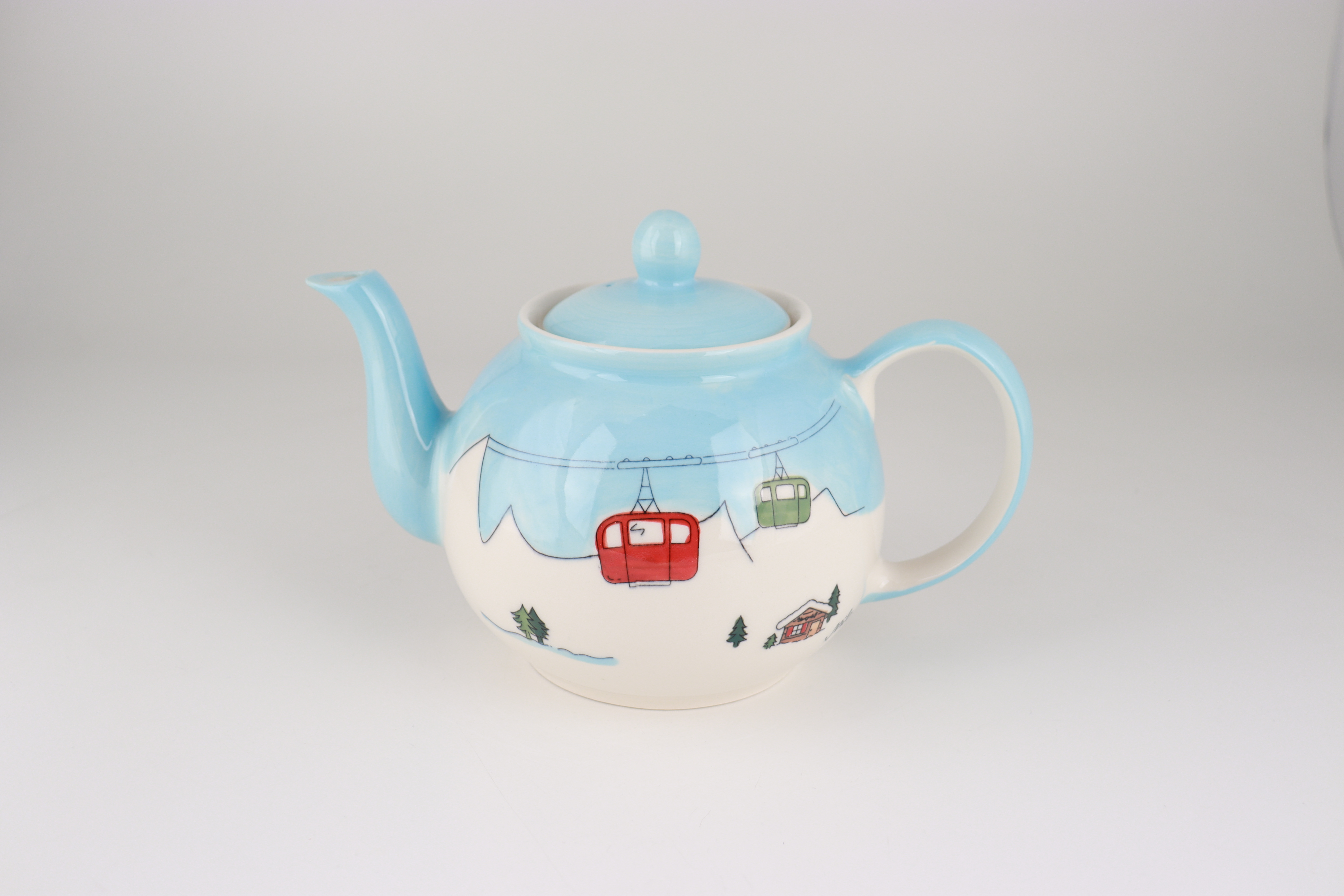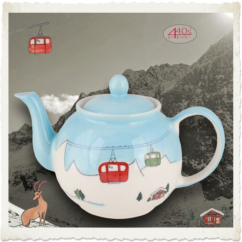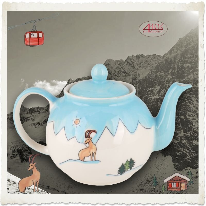 Dieses Angebot gilt für ein Stück Mila Keramik-Tee-Kanne mit einem Fassungsvermögen von ca. 1,2 Litern, Motiv: Gipfelstürmer, Artikel MI-94316, ohne Deko oder sonstigem Zubehör.
