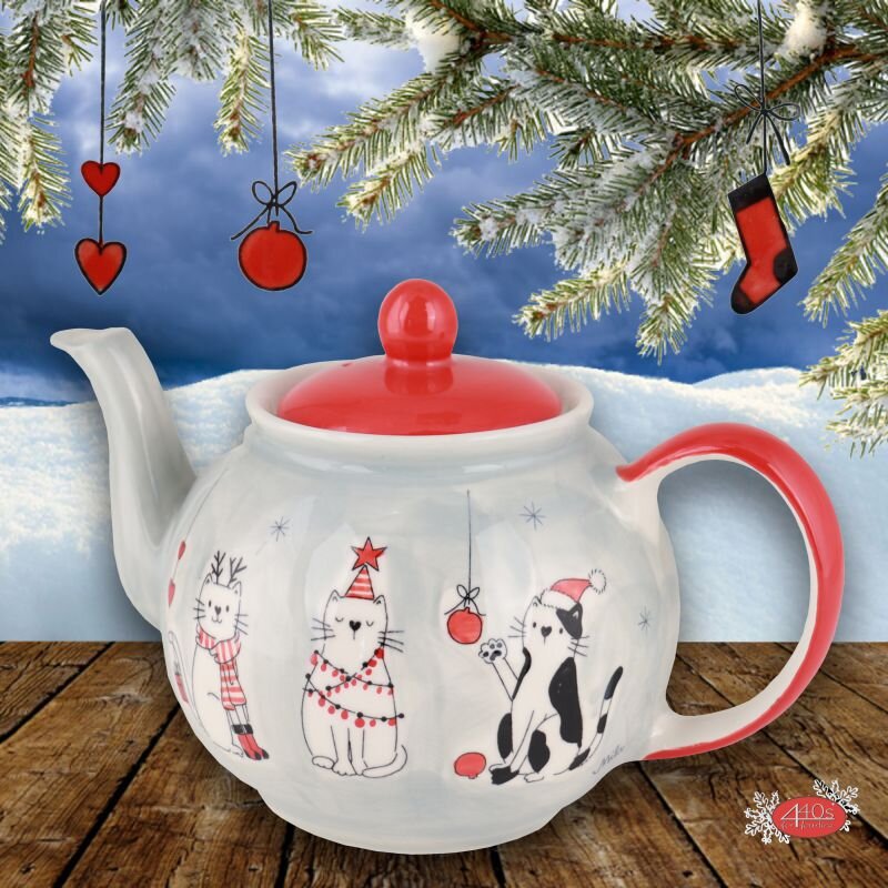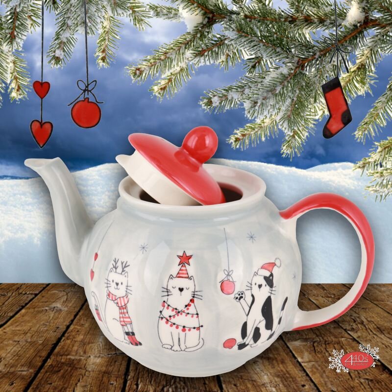Dieses Angebot gilt für ein Stück Mila Keramik-Tee-Kanne mit einem Fassungsvermögen von ca. 1,2 Litern, Motiv: X-Mas Cats, Artikel MI-94313, ohne Deko oder sonstigem Zubehör.