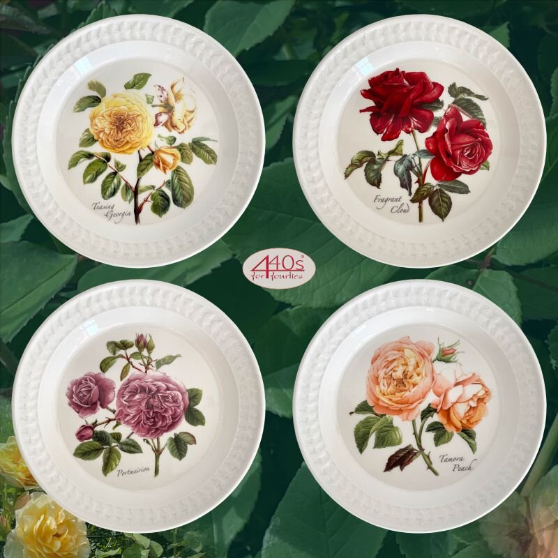 Dieses Angebot gilt für ein Set Portmeirion Keramik Frühstücksteller aus der Botanic Roses Embossed Linie, ca. 21,5 cm D, mit vier verschiedenen Motiven: 1x Fragrant Cloud, 1x Portmeirion, 1x Tamora Peach, 1x Teasing Georgia, Artikel PM-BR05073Set, ohne Deko oder sonstigem Zubehör.