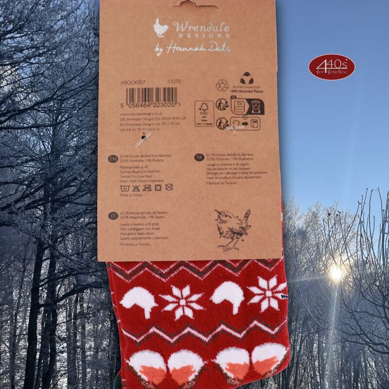 Dieses Angebot gilt für ein Paar Wrendale Desings Damen Socken, Motiv: Rotkehlchen Season's Tweeting, Größe 36-41, Artikel WD-XSOCK007, ohne Deko oder sonstigem Zubehör.